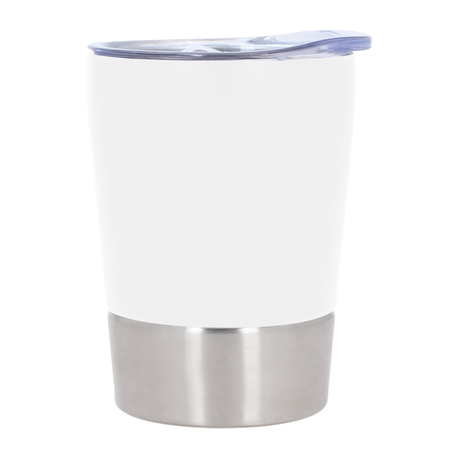 Termo de doble pared de acero inoxidable con tapa de cierre a presión.