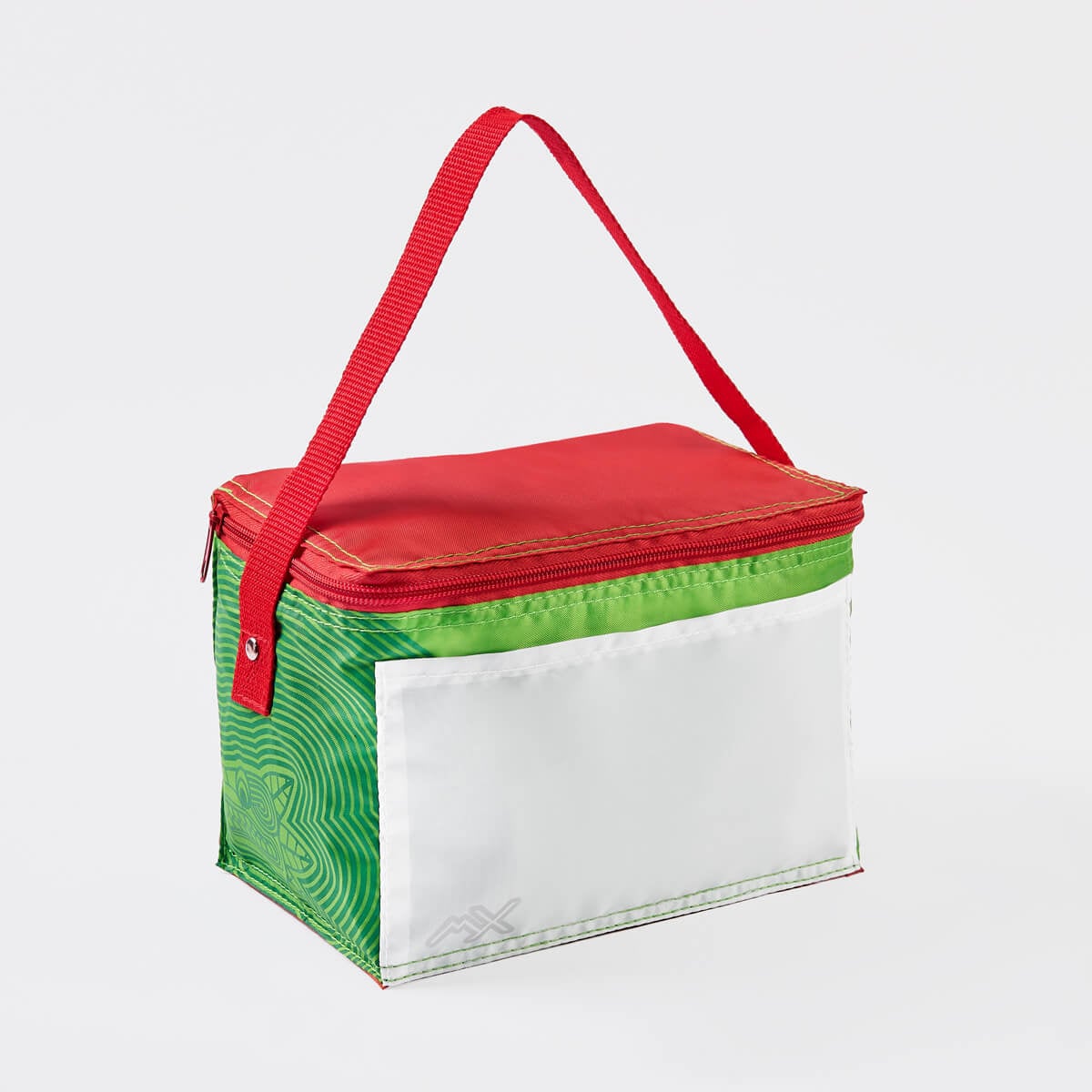 Lonchera con Interior plastificado impermeable. Bolsa principal con cierre, cuenta con una bolsa frontal sencilla. Incluye correa ajustable. Capacidad para 6 latas.