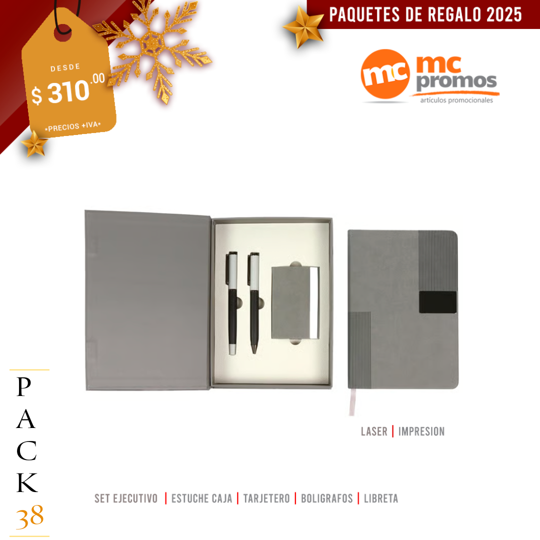 Set ejecutivo, incluye dos bolígrafos, tarjetero y libreta de 80 g y 100 hojas. Set empaquetado en caja de regalo con diseño ejecutivo y espacio adecuado para guardar todos los artículos.