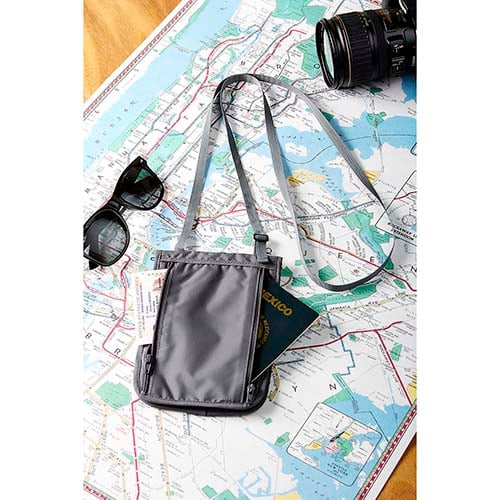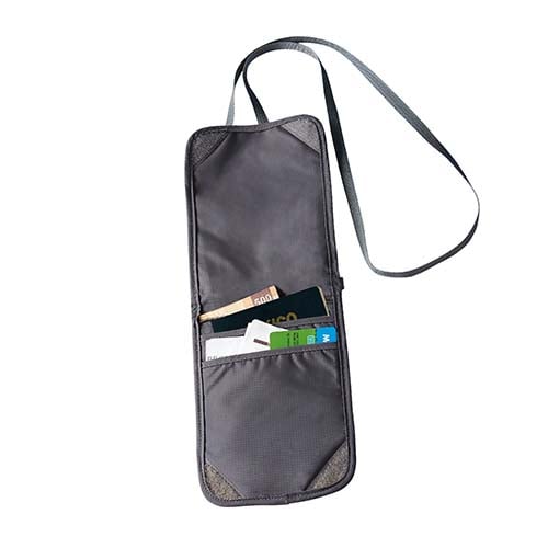 2 Bolsas frontales con cierre. Interior con 2 compartimentos multifunción y bolsa con cierre. Incluye correa.