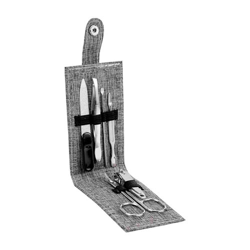 Incluye 1 tijeras, 1 pinza para cejas, 1 corta uñas, 1 lima de uñas, 1 empujador de cutícula y 1 limpia uñas. No para uso profesional.