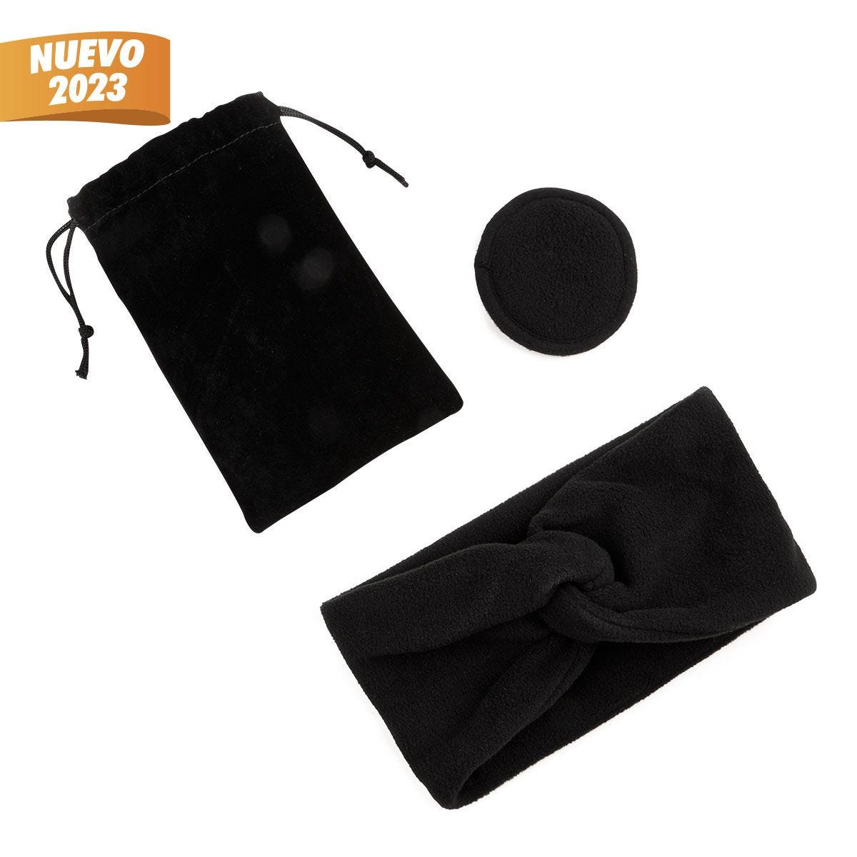 Set de cuidado facial. Incluye una diadema, un pad removedor de maquillaje reusable y una bolsa con jareta.