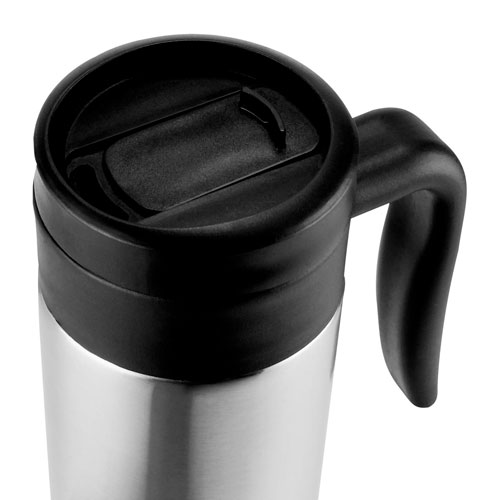 Doble pared. Pared interna plástico, pared externa acero inoxidable. Tapa de plástico con válvula de seguridad. Incluye caja individual.
