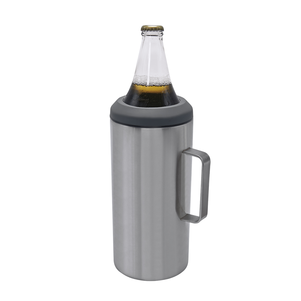 Doble pared. Pared interna y externa de acero inoxidable. Cerrado al vacío. Incluye tapa de silicón para usar como portabotellas de 940 ml y tapa de plástico con válvula de seguridad y cierre con rosca. Mantiene temperatura caliente o fría 6 hrs aproximadamente. Se puede usar como tarro al quitarle las tapas. Incluye caja individual.