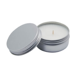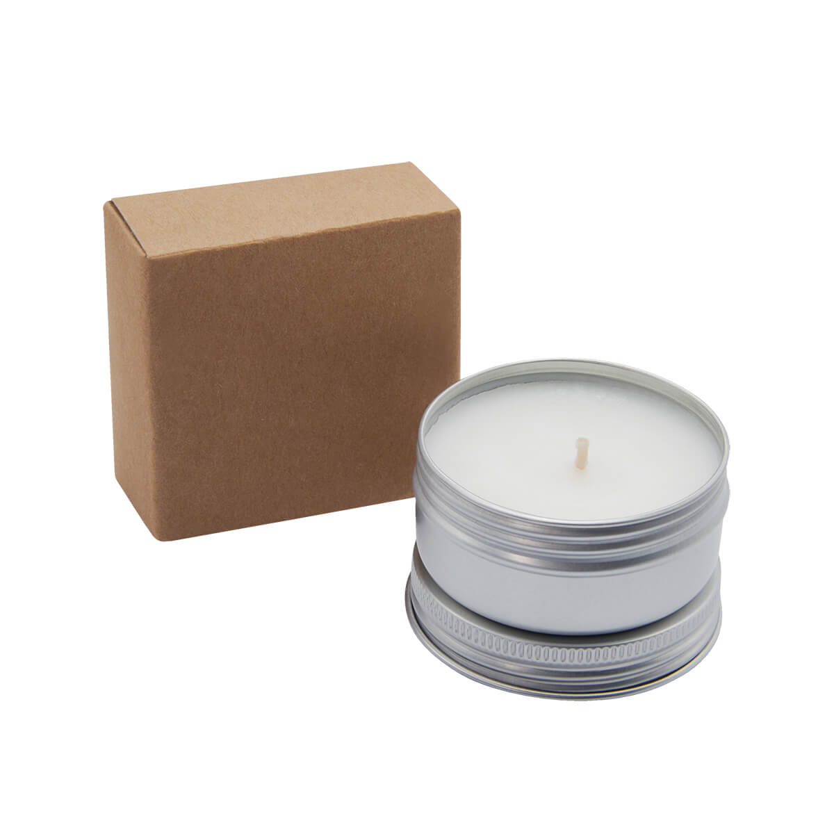 Vela con aroma a vainilla. Incluye estuche de metal con tapa de rosca.