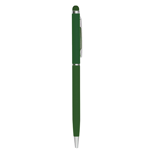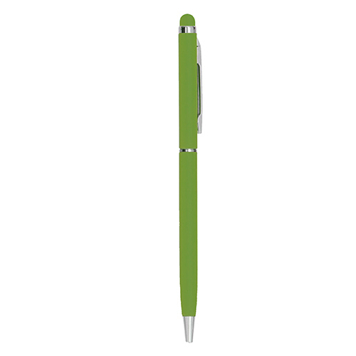 Bolígrafo metálico con acabado rubber, goma óptica touch screen y mecanismo retráctil.